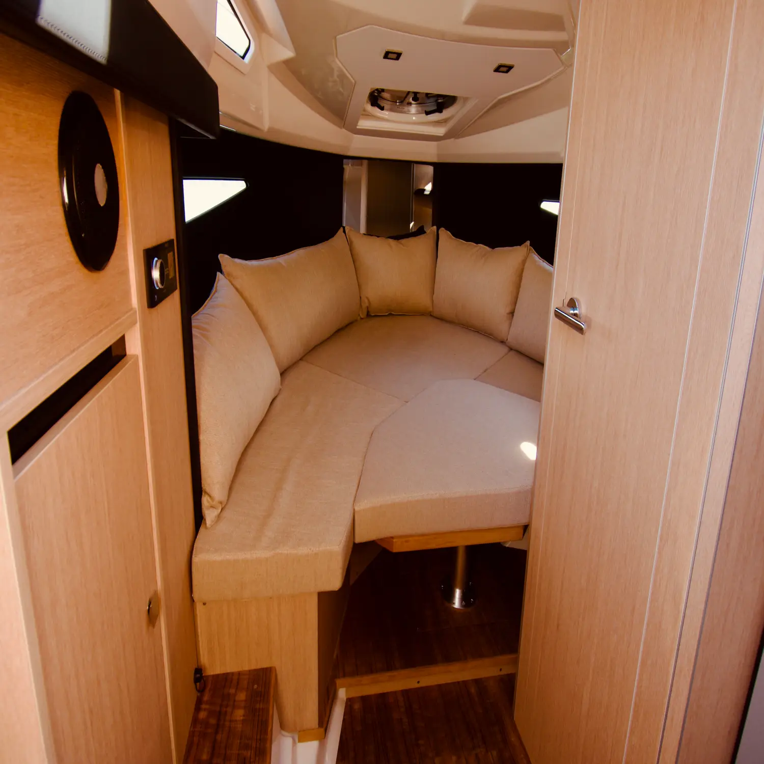 All’interno è presente una cabina confortevole con toilette e doccia con acqua calda, progettata per garantire il massimo comfort durante la navigazione. La barca è motorizzata con un potente Volvo Penta da 300 CV, che assicura ottime prestazioni e grande stabilità. Tra le dotazioni troviamo anche frigorifero e moderno impianto stereo wireless, ideali per accompagnare la vostra giornata sul Lago di Como.
